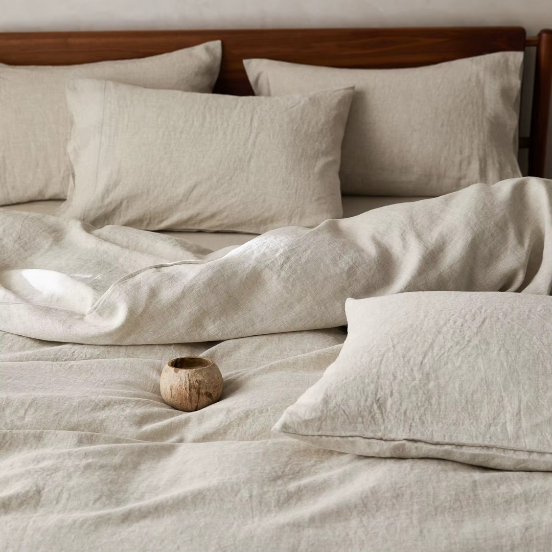 Erlebe den natürlichen Luxus eines ruhigen Schlafs mit unserem Nirvan™ Premium-Leinen Bettwäsche-Set.
