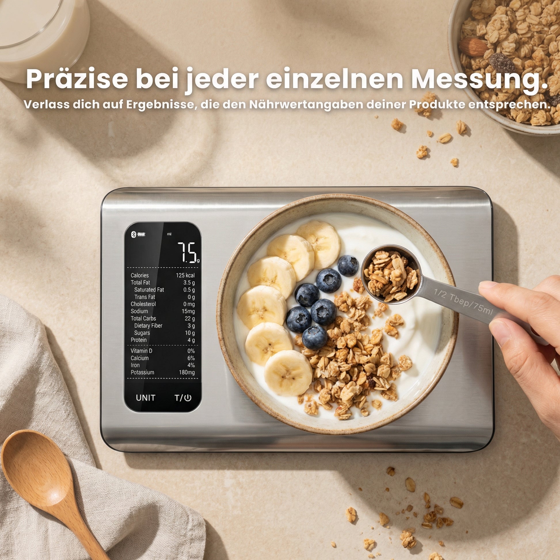 NutriPro™ misst präzise bis auf 1 Gramm genau.